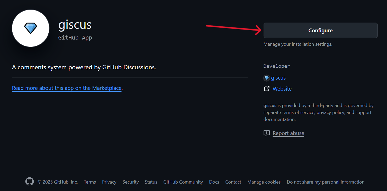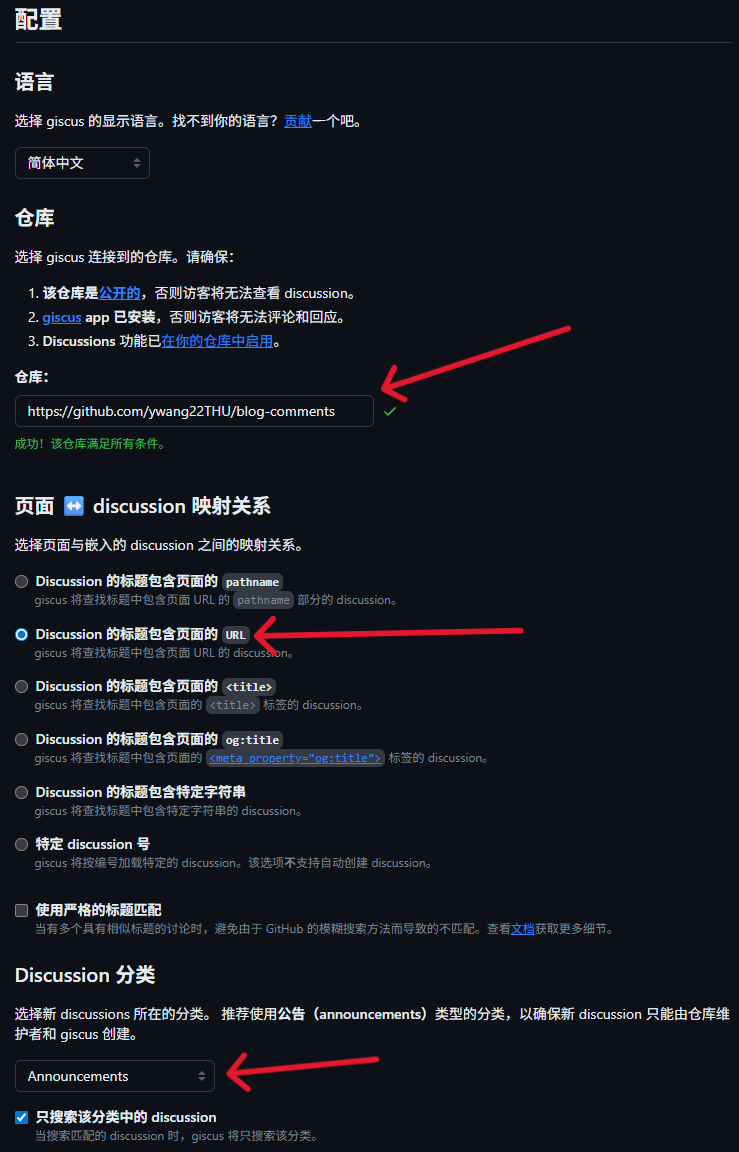 访问 Giscus 网页上,往其中的 配置 部分填入 repo 的有关信息