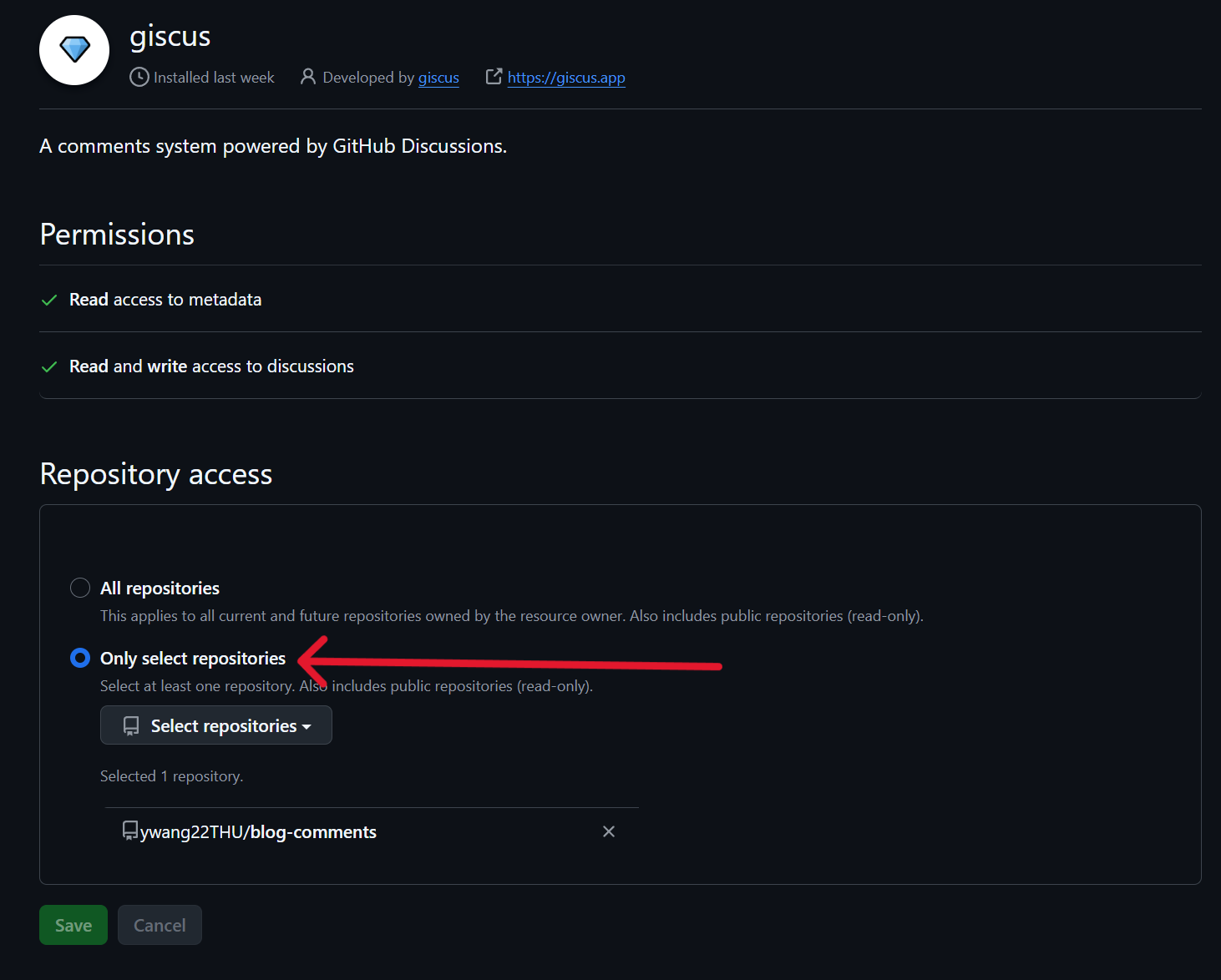 giscus 是基于 Github Discussion 来实现的评论插件,每个页面的评论区对应一个 discussion,因此需要基于一个 github 仓库来记录评论,操作方法为
