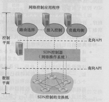 - 位于数据平面交换机外部的网络控制:控制平面独立于数据平面之外