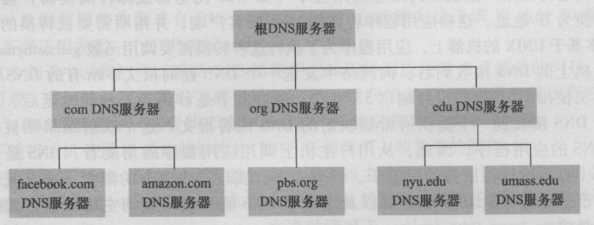 从上到下依次为:根服务器,顶级域服务器与权威服务器,访问一个主机名的时候从上至下访问服务器,从右至左依次匹配