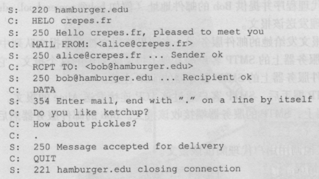 SMTP有一条特殊规则是:只包含个句点符号的单行,表示的是个句点,因为单个句点是指示报文结束,对话形式如下图: